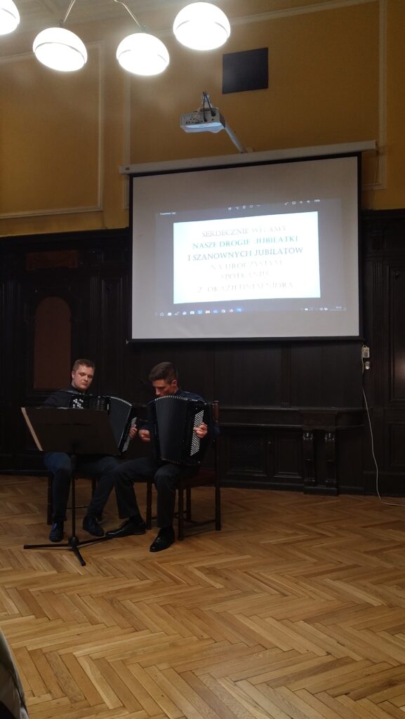 Na początku spotkania Honorowy Prezes WR FSNT NOT powitał Jubilatów oraz gości. Oprawę muzyczną zapewnili uczniowie Szkoły Muzycznej II stopnia im. K. Szymanowskiego we Wrocławiu – Dominik Bezkorowajny i Dominik Szauer. Młodzi muzycy swoim talentem dostarczyli odbiorcom wielu niezapomnianych emocji i wzruszeń. W dalszej części uroczystości Honorowy Prezes WR FSNT NOT przekazał Jubilatom życzenia zdrowia, satysfakcji z osiągniętych celów oraz niesłabnącej chęci do dalszego, aktywnego życia.